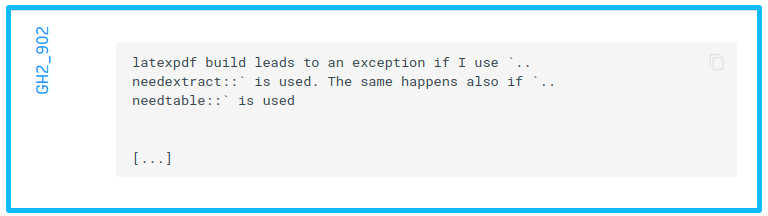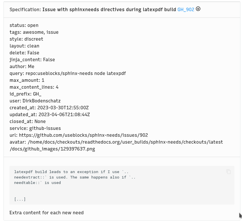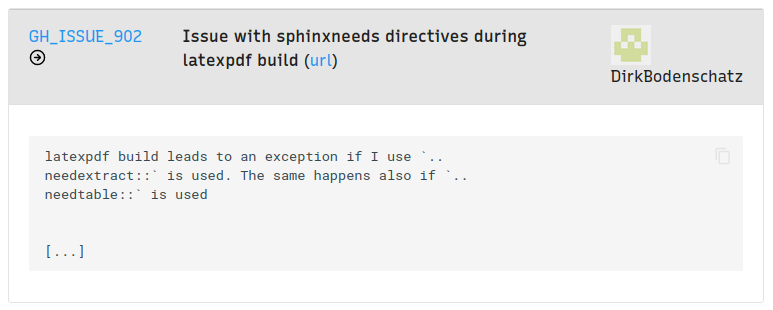 Example of a github Issue collected with Sphinx-Needs.¶