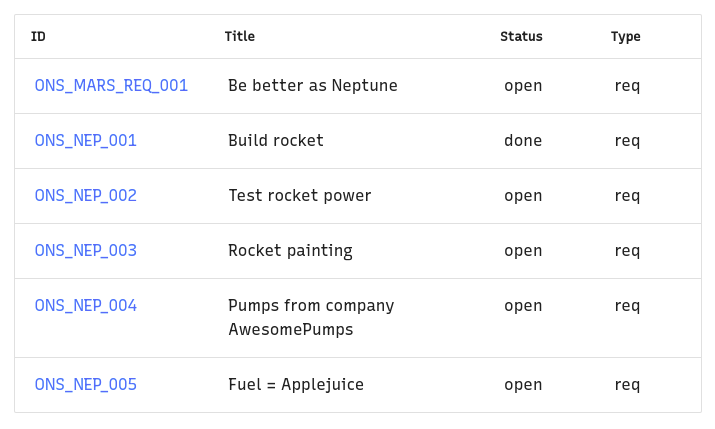 For instance: In the data retrieved from the Open-Needs server, type is named Requirement, but Sphinx-Needs supports only req as value for type option.
